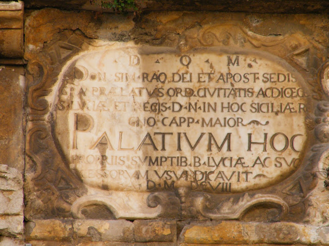 Il cartiglio marmoreo sul portale del Palazzo Vescovile che Padre Parisi trascrisse erroneamente con l'anno 1613 in luogo di 1608.